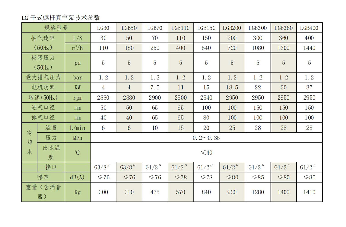 LGB幹式螺杆真空泵技術參數