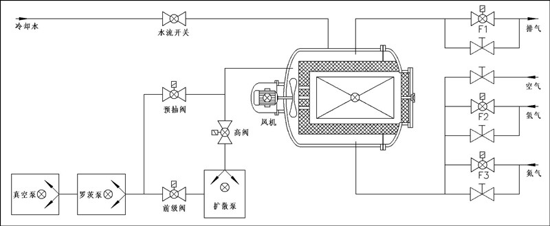 高真空熱處理爐本爐為單室臥式內熱型真空電阻爐。設備主要由水冷式爐體、保溫發熱體、工件支承體(料台)、真空獲得係統、充排氣係統、水冷卻係統、強製冷卻係統、裝卸機構、加熱係統、操作係統和安全保護係統等部分組成。